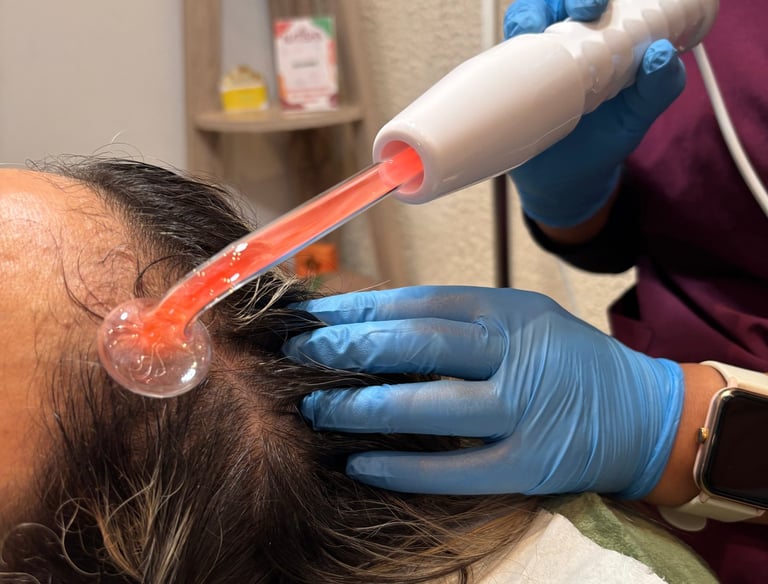 Nos soins allient technologies douces comme la LED thérapie ou le HairNeedling, et formules naturelles ciblées pour stimuler la repousse, apaiser les déséquilibres et restaurer la vitalité du cuir chevelu.