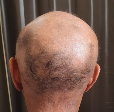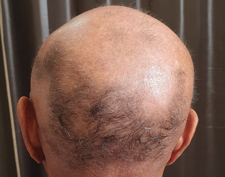 ➡️ Traitement : prise en charge dermatologique + accompagnement pour apaiser le cuir chevelu et optimiser la repousse sur les zones encore actives.