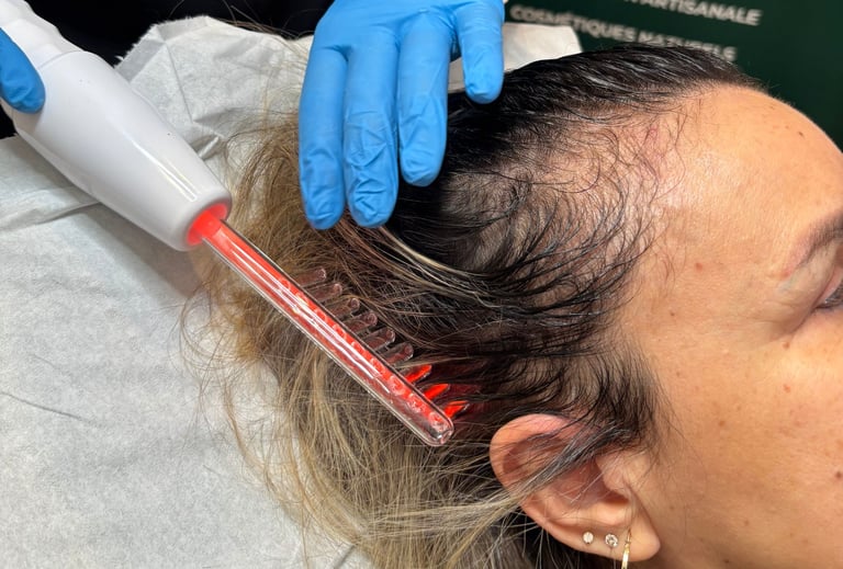 Lorsque cela est pertinent, certaines techniques esthétiques non invasives peuvent être intégrées afin de soutenir la vitalité fonctionnelle du cuir chevelu et accompagner l’activité folliculaire, toujours dans un cadre esthétique sécurisé.
